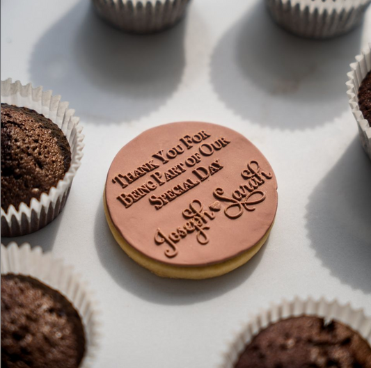 create elegant and stunning designs on your fondant cookies with a custom cookie debosser stamp. These are great for custom wedding cookies, event party favours, or simply as a way to showcase your logo on your cake boards or atop your desserts.